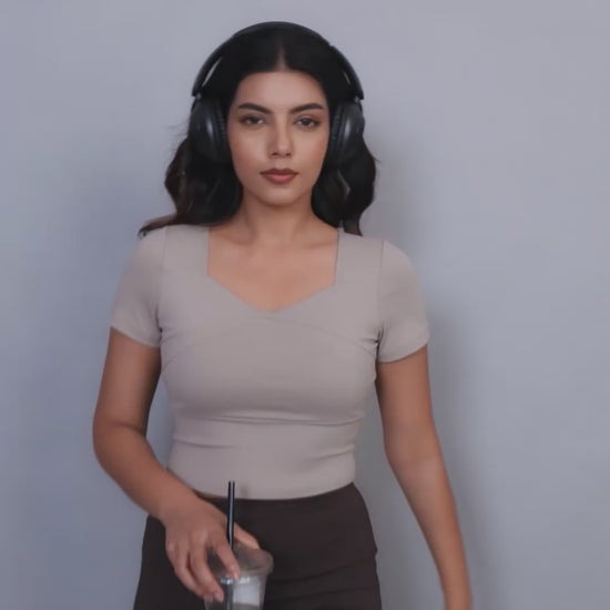 A smart, short-sleeve cropped top designed for all-day wear. It features a flattering V-neck detail and is cut at the waist for a balanced silhouette. Stretchy, breathable fabric keeps you comfortable whether you’re in the studio or on the street